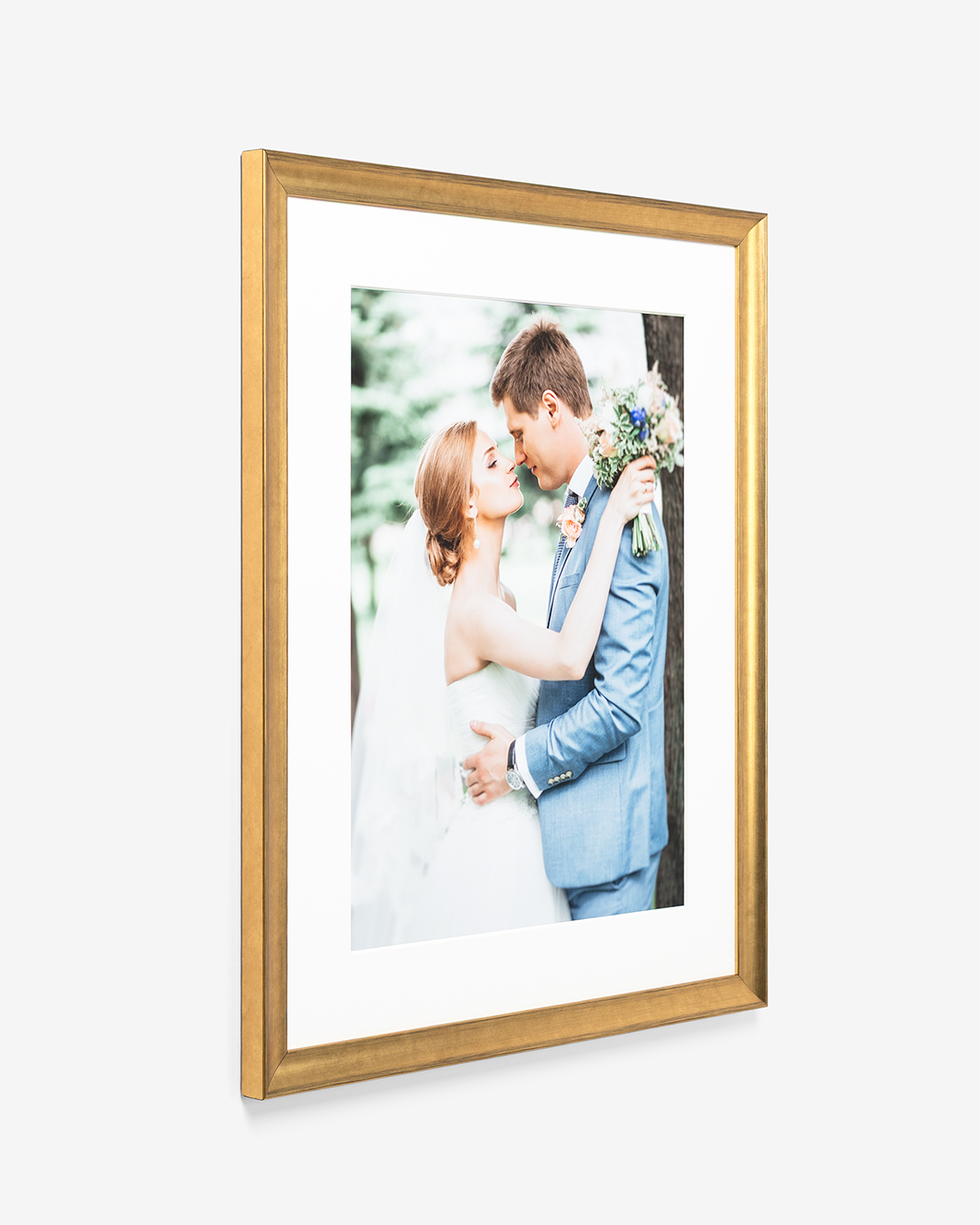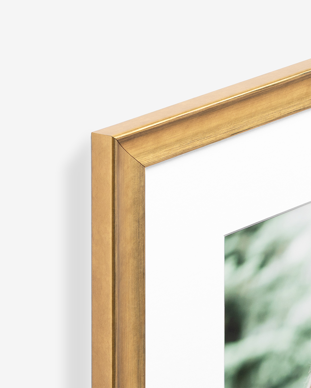 Een veelzijdige collectie, elke lijst met zijn eigen unieke details en profiel. Stijlvolle lijst met een licht aflopend profiel en een warme gouden afwerking.