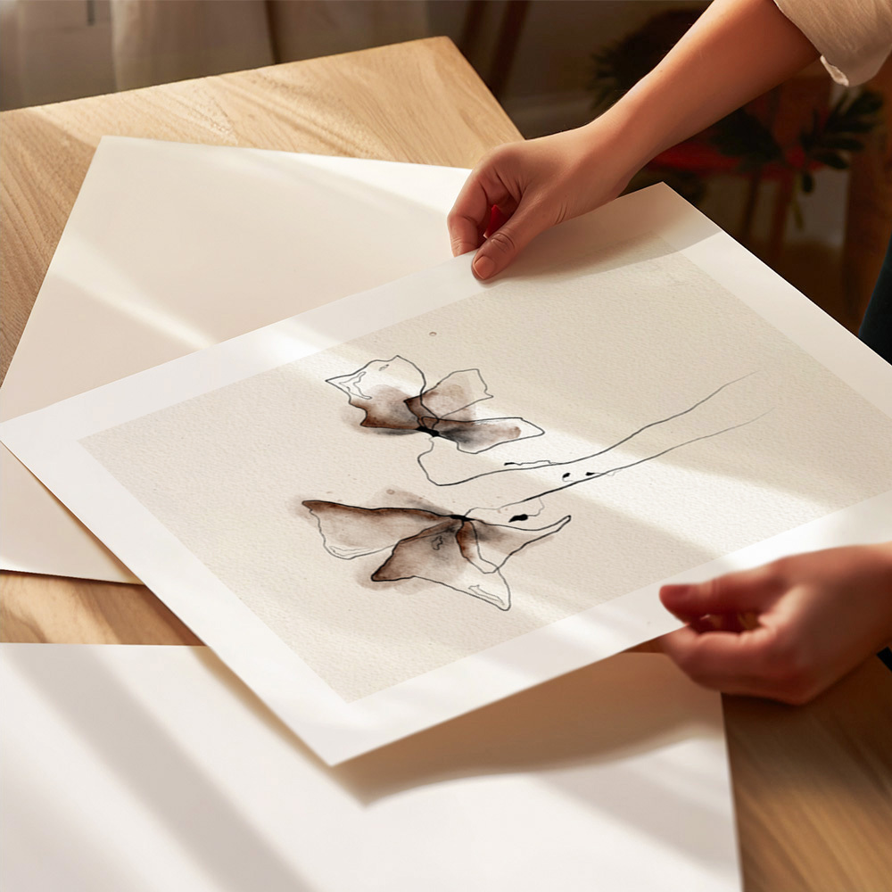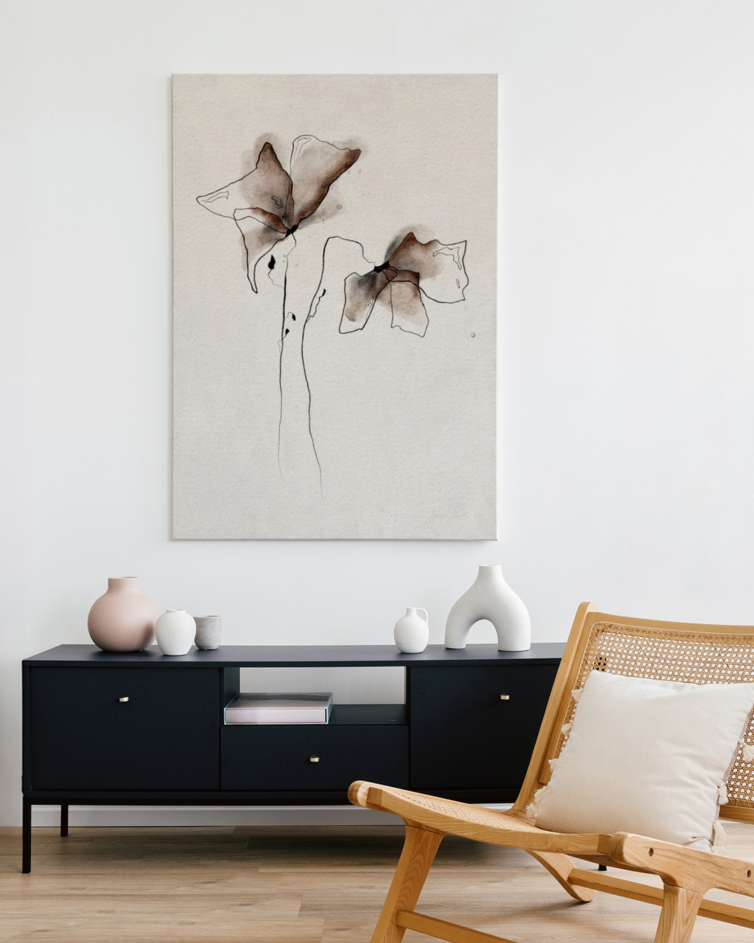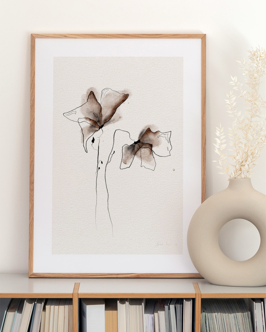 Ervaar de elegantie van subtiele bloemvormen vastgelegd in deze betoverende aquarel schilderij. Het delicate samenspel van zachte, aardse tonen creëert een heerlijk botanisch thema dat natuurlijke schoonheid en verfijnde artistieke expressie benadrukt.
