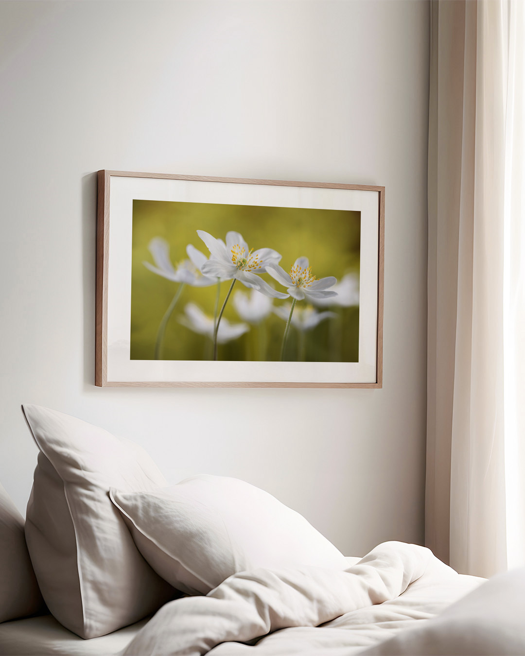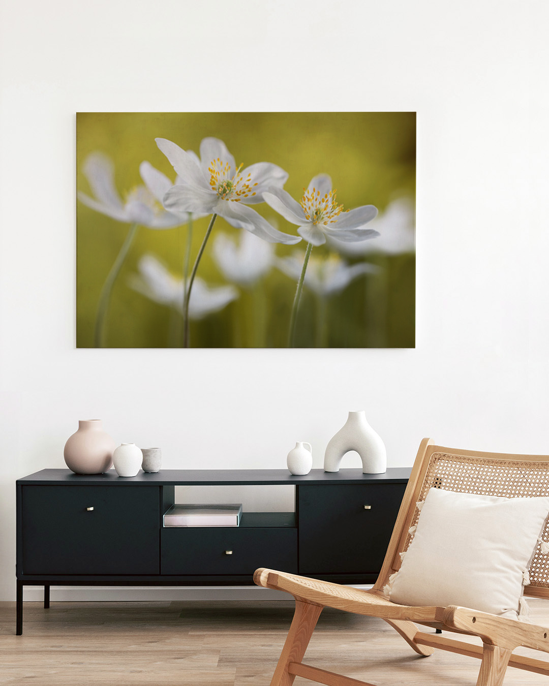 Erleben Sie die sanfte Schönheit der Buschwindröschen, eingefangen in exquisiter Makro-Detailierung von Mandy Disher. Ihre zarten Blütenblätter und weichen Farbtöne verkörpern den Charme der Natur und vermitteln ein beruhigendes und friedliches visuelles Erlebnis.