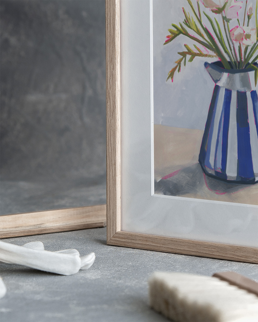 Die gespannte Leinwand wird in einen stilvollen Schattenfugenrahmen aus echtem Holz eingefasst, um einen eleganten Look und zusätzliche Dimension zu schaffen. Der Raum zwischen der Leinwand und dem Rahmen erzeugt einen schwebenden Effekt.