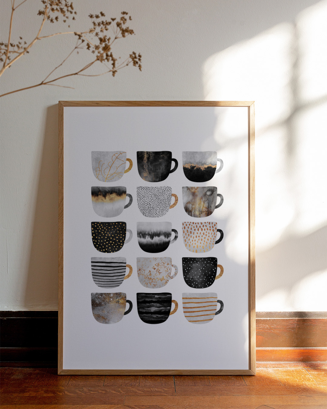 Die gespannte Leinwand wird in einen stilvollen Schattenfugenrahmen aus echtem Holz eingefasst, um einen eleganten Look und zusätzliche Dimension zu schaffen. Der Raum zwischen der Leinwand und dem Rahmen erzeugt einen schwebenden Effekt.