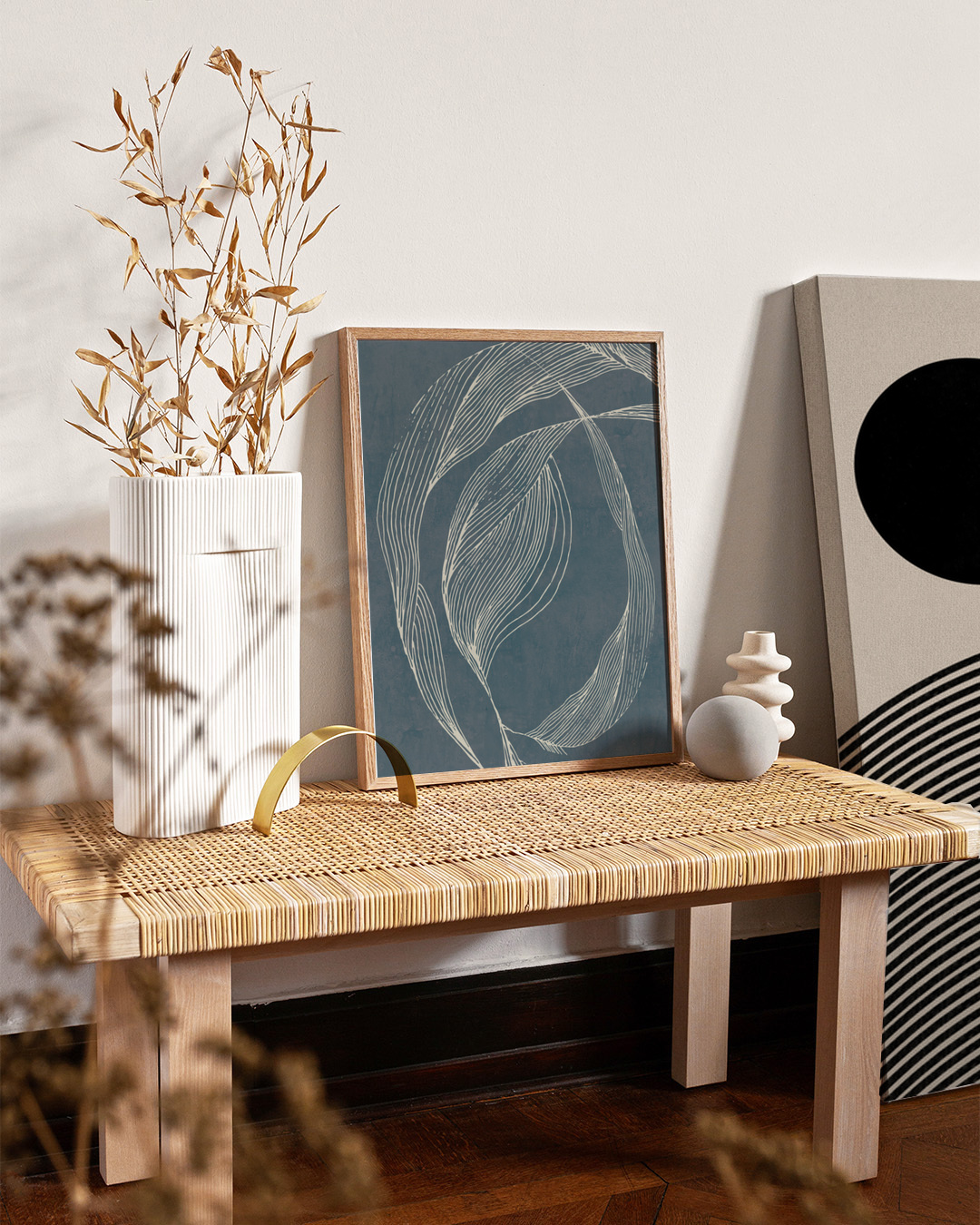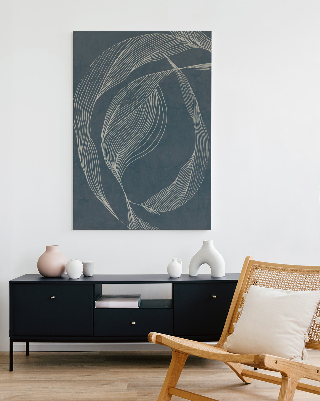 Die gespannte Leinwand wird in einen stilvollen Schattenfugenrahmen aus echtem Holz eingefasst, um einen eleganten Look und zusätzliche Dimension zu schaffen. Der Raum zwischen der Leinwand und dem Rahmen erzeugt einen schwebenden Effekt.