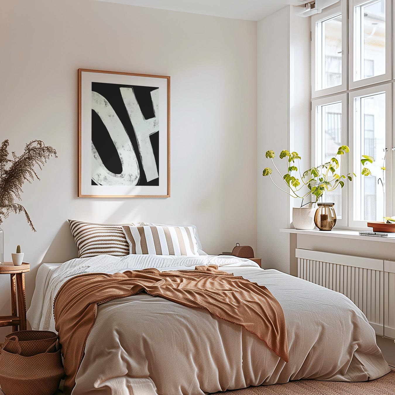 Fette Schrift mit 'Oh' in Weiß auf einem kontrastreichen schwarzen Hintergrund. Ein einfaches, aber auffälliges Design, das einen Überraschungsmoment einfängt.
