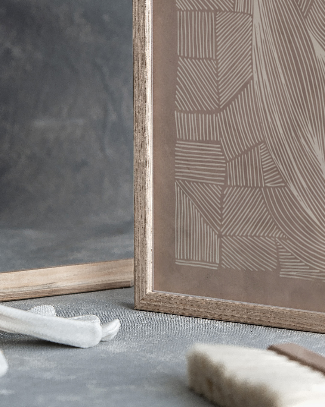 Die gespannte Leinwand wird in einen stilvollen Schattenfugenrahmen aus echtem Holz eingefasst, um einen eleganten Look und zusätzliche Dimension zu schaffen. Der Raum zwischen der Leinwand und dem Rahmen erzeugt einen schwebenden Effekt.