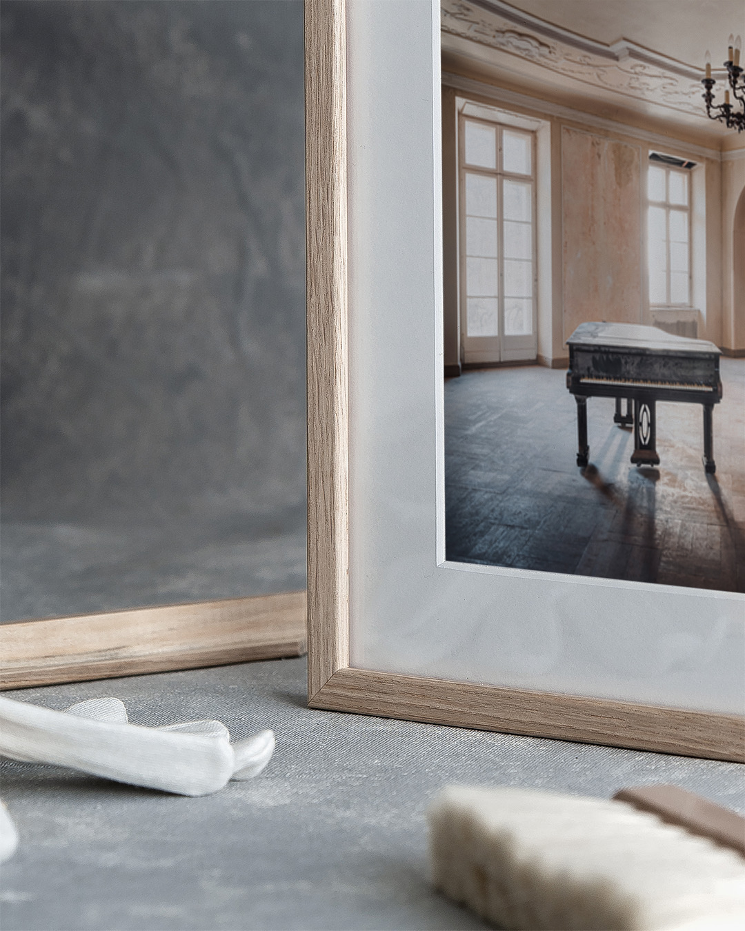 Den ekstra dybe og brede rammeprofil skaber stabilitet og et ægte blikfang på din væg. Håndlavet og afsluttet med et præcisionsskåret