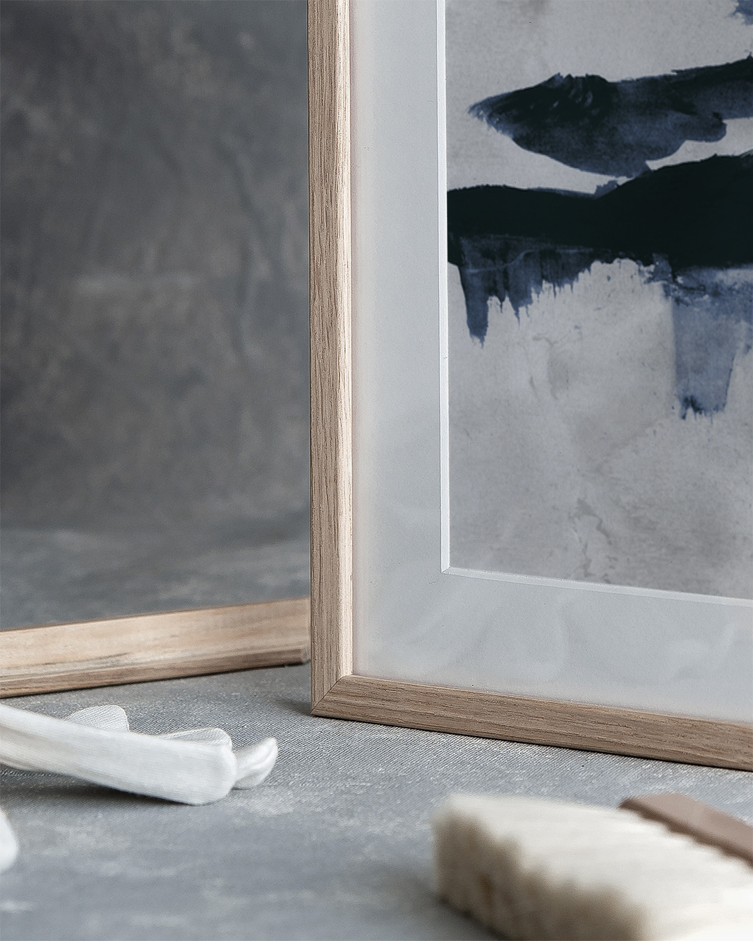 Den ekstra dybe og brede rammeprofil skaber stabilitet og et ægte blikfang på din væg. Håndlavet og afsluttet med et præcisionsskåret
