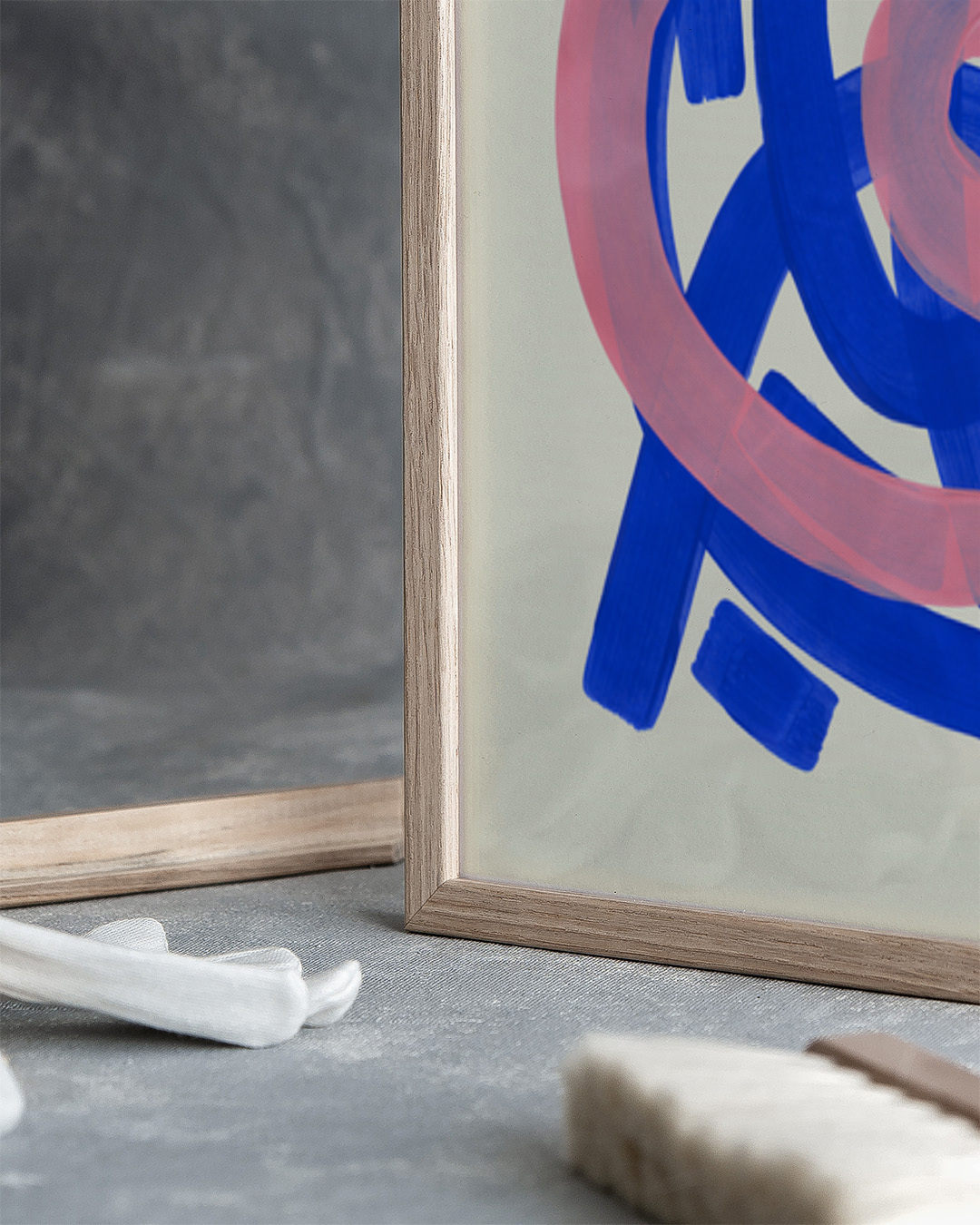 Den ekstra dybe og brede rammeprofil skaber stabilitet og et ægte blikfang på din væg. Håndlavet og afsluttet med et præcisionsskåret
