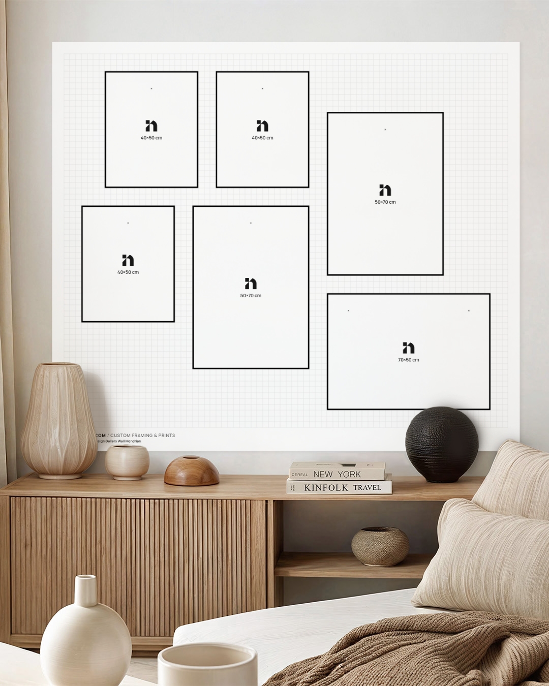 Hang your frames straight and in the perfect layout in one go thanks to our unique hanging template.