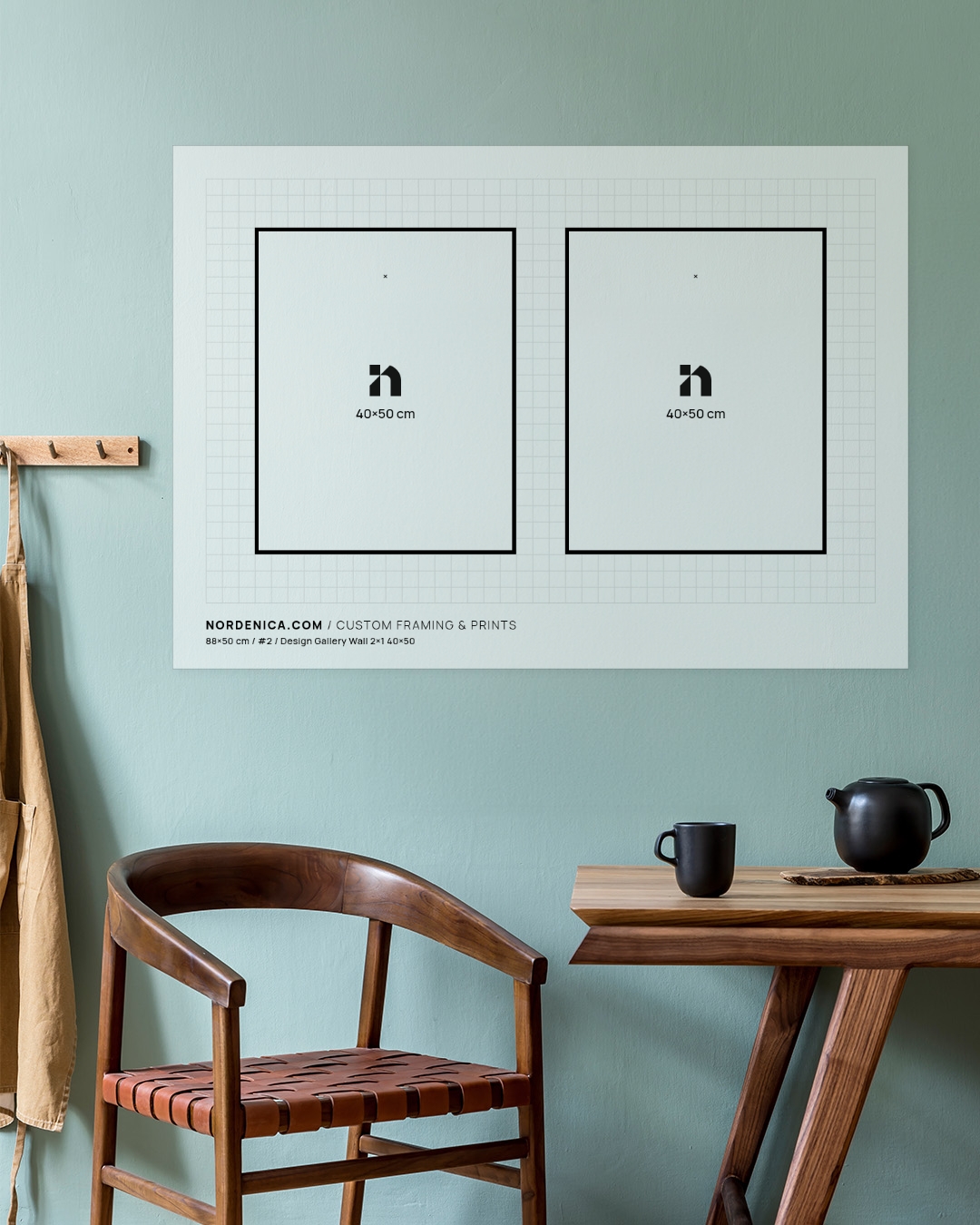 A gallery wall featuring 2 framed prints in 1 size. Select from a variety of frame profiles and add-ons. Customize further by changing the artwork or layout.