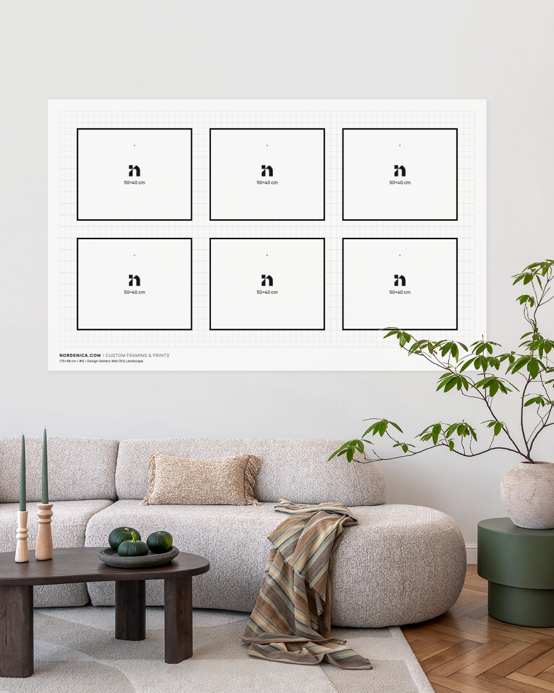 A gallery wall featuring 6 framed prints in 1 size. Select from a variety of frame profiles and add-ons. Customize further by changing the artwork or layout.