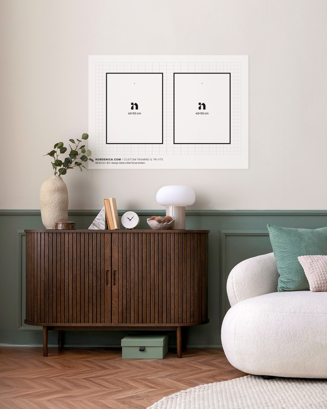 A gallery wall featuring 2 framed prints in 1 size. Select from a variety of frame profiles and add-ons. Customize further by changing the artwork or layout.