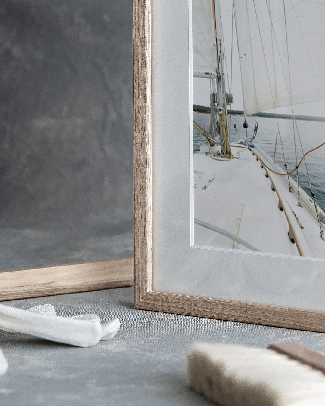 Het gespannen canvas wordt gemonteerd in een stijlvolle baklijst van echt hout voor een elegante uitstraling en extra dimensie. De ruimte tussen het canvas en de lijst creëert een zwevend effect.