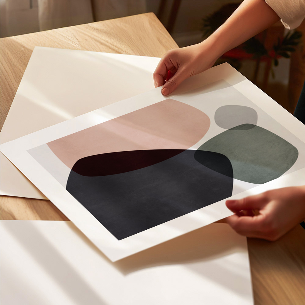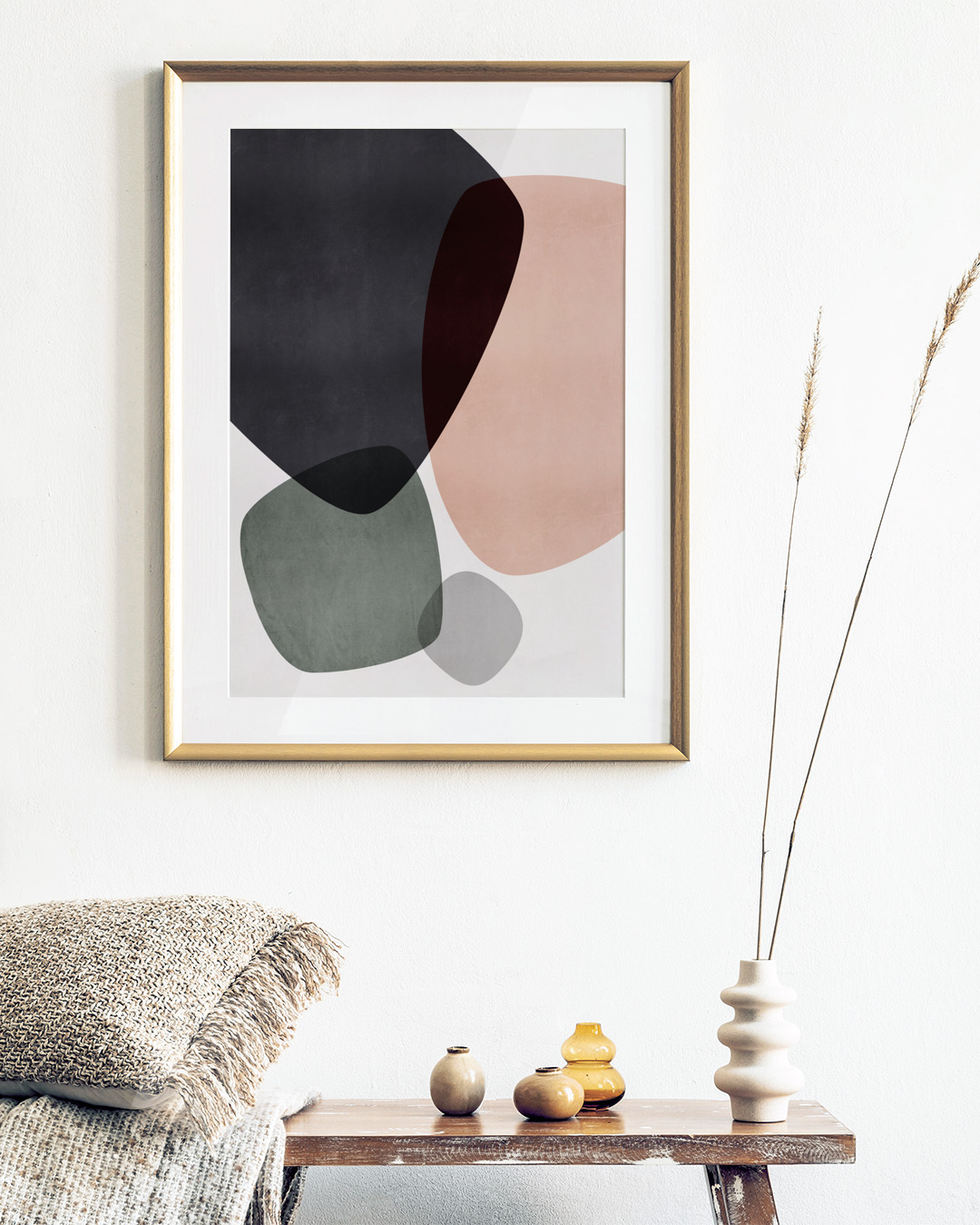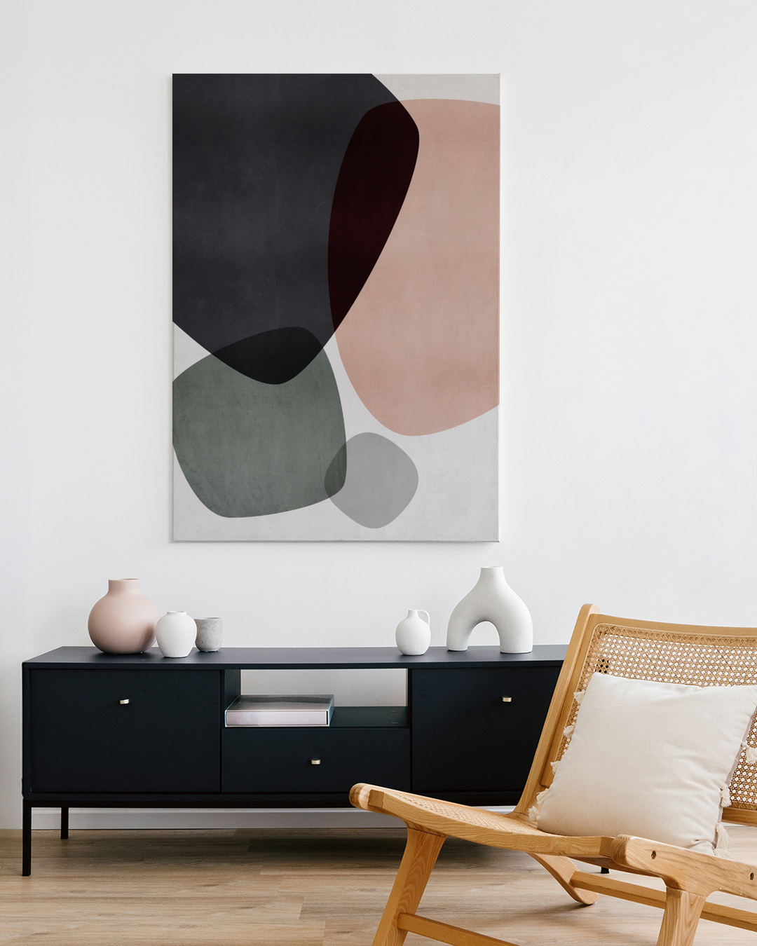 Mareike Böhmers abstracte compositie bevat vloeiende, organische vormen in gedempte tinten. Het kunstwerk brengt een gevoel van rust en artistieke flair, perfect voor het toevoegen van een onderscheidende touch aan elke ruimte.