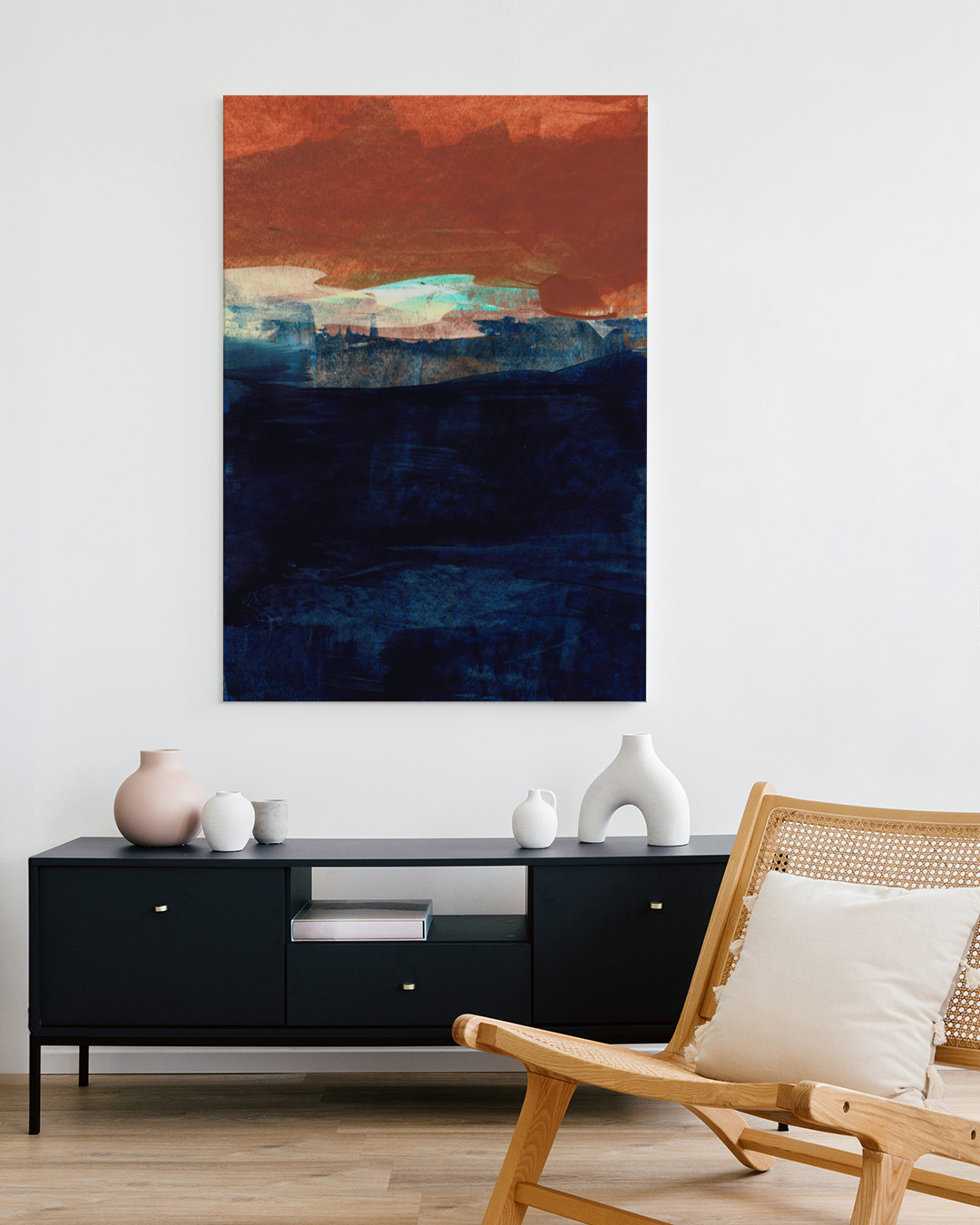 Het gespannen canvas wordt gemonteerd in een stijlvolle baklijst van echt hout voor een elegante uitstraling en extra dimensie. De ruimte tussen het canvas en de lijst creëert een zwevend effect.