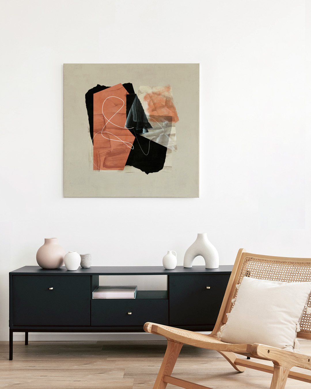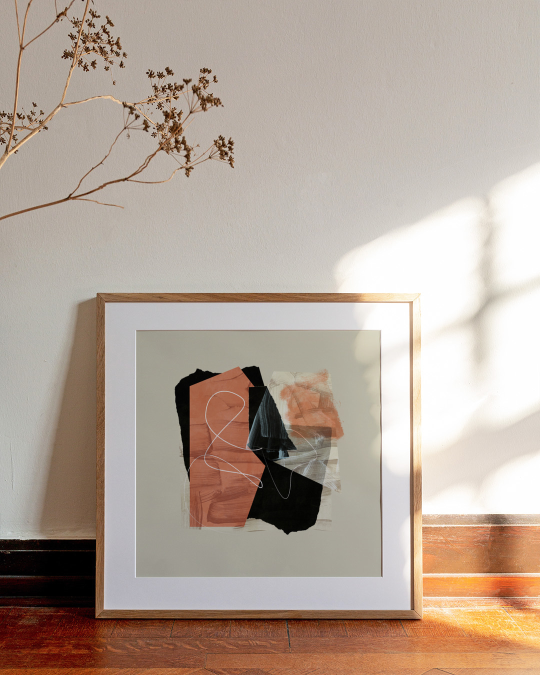 Het gespannen canvas wordt gemonteerd in een stijlvolle baklijst van echt hout voor een elegante uitstraling en extra dimensie. De ruimte tussen het canvas en de lijst creëert een zwevend effect.