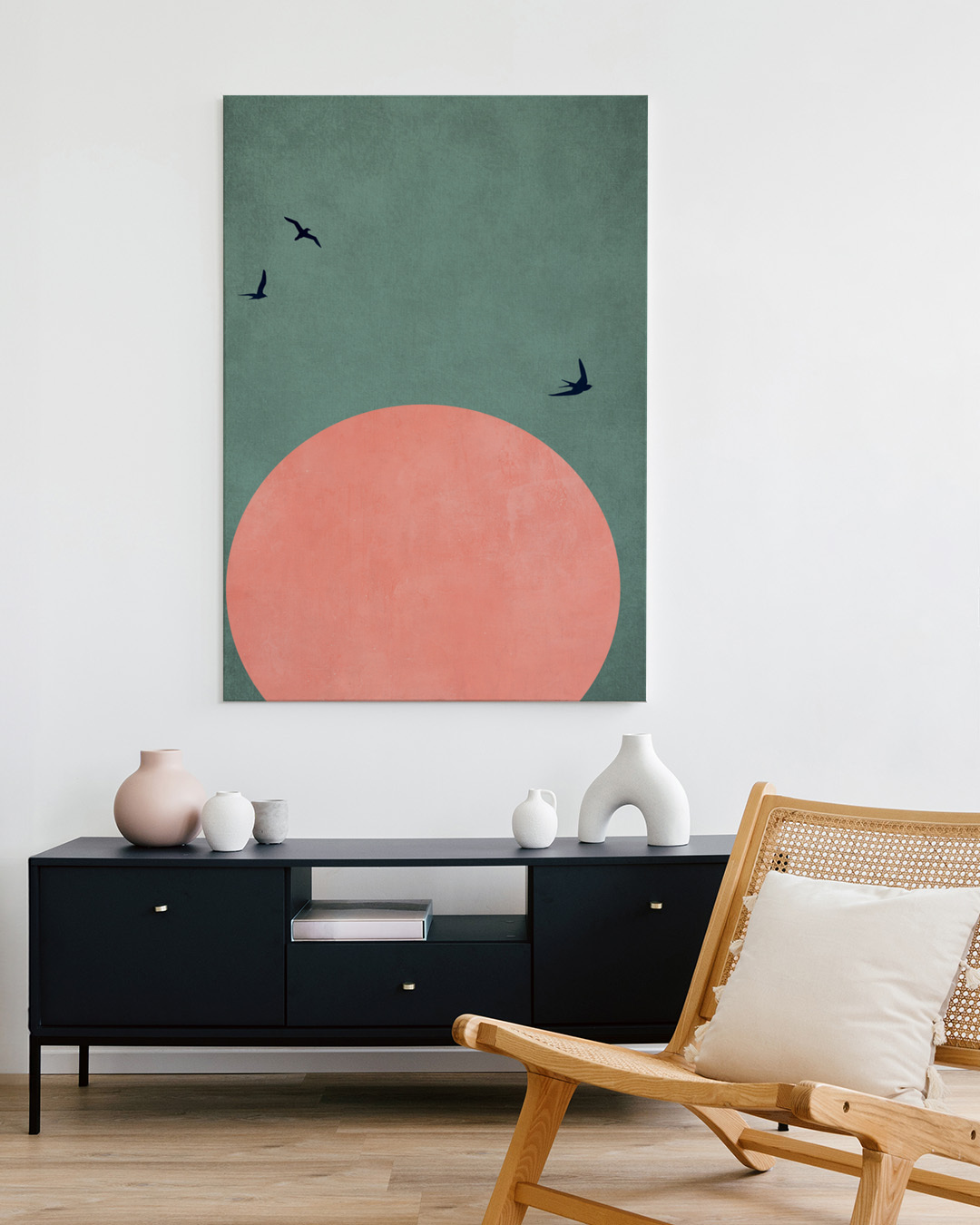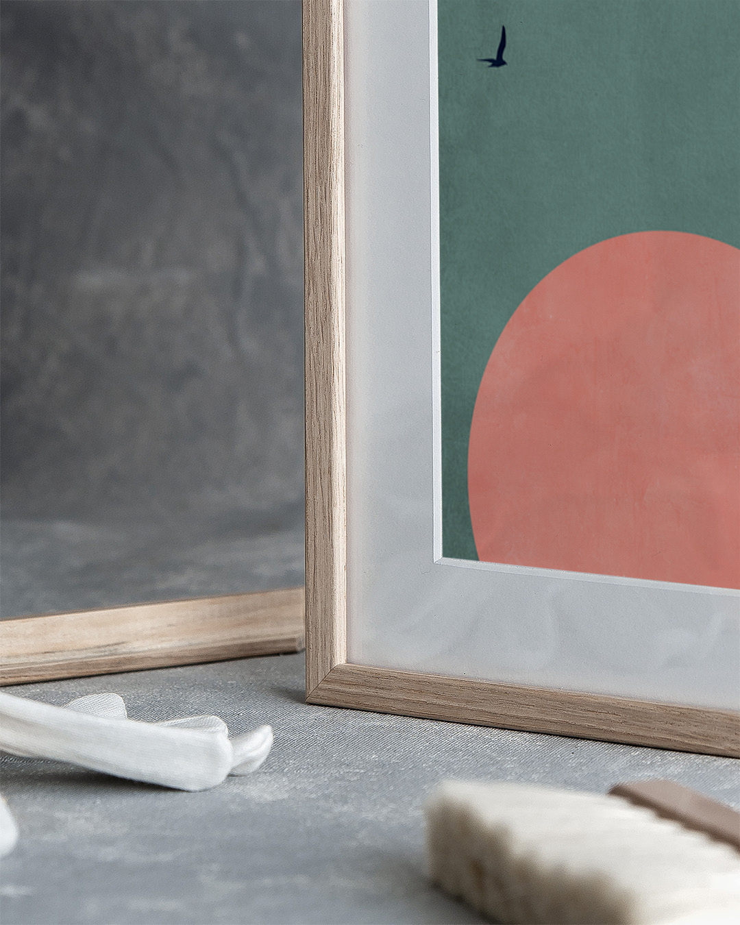 Het gespannen canvas wordt gemonteerd in een stijlvolle baklijst van echt hout voor een elegante uitstraling en extra dimensie. De ruimte tussen het canvas en de lijst creëert een zwevend effect.