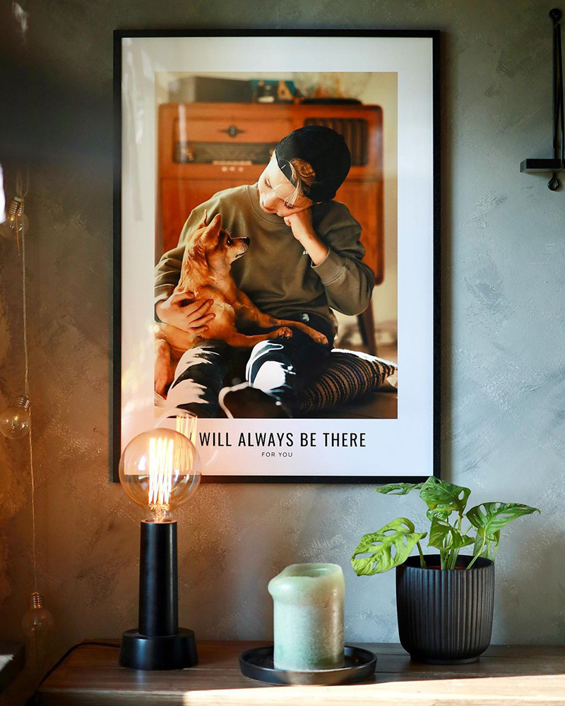 Use your photos to design personalised photo art. Choose filter, text, design and size of your poster.