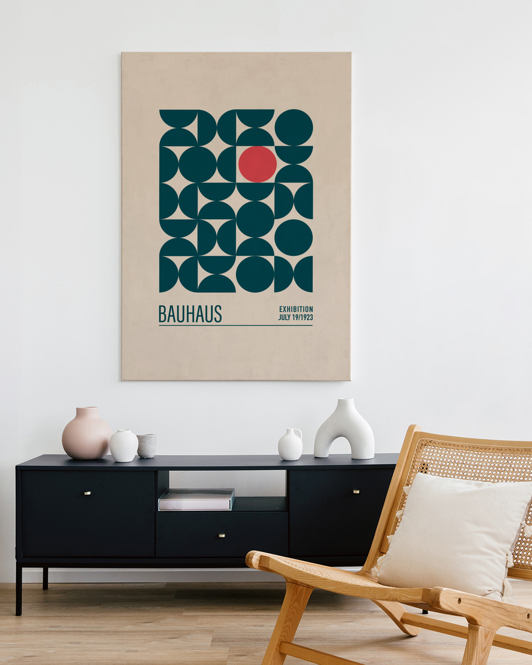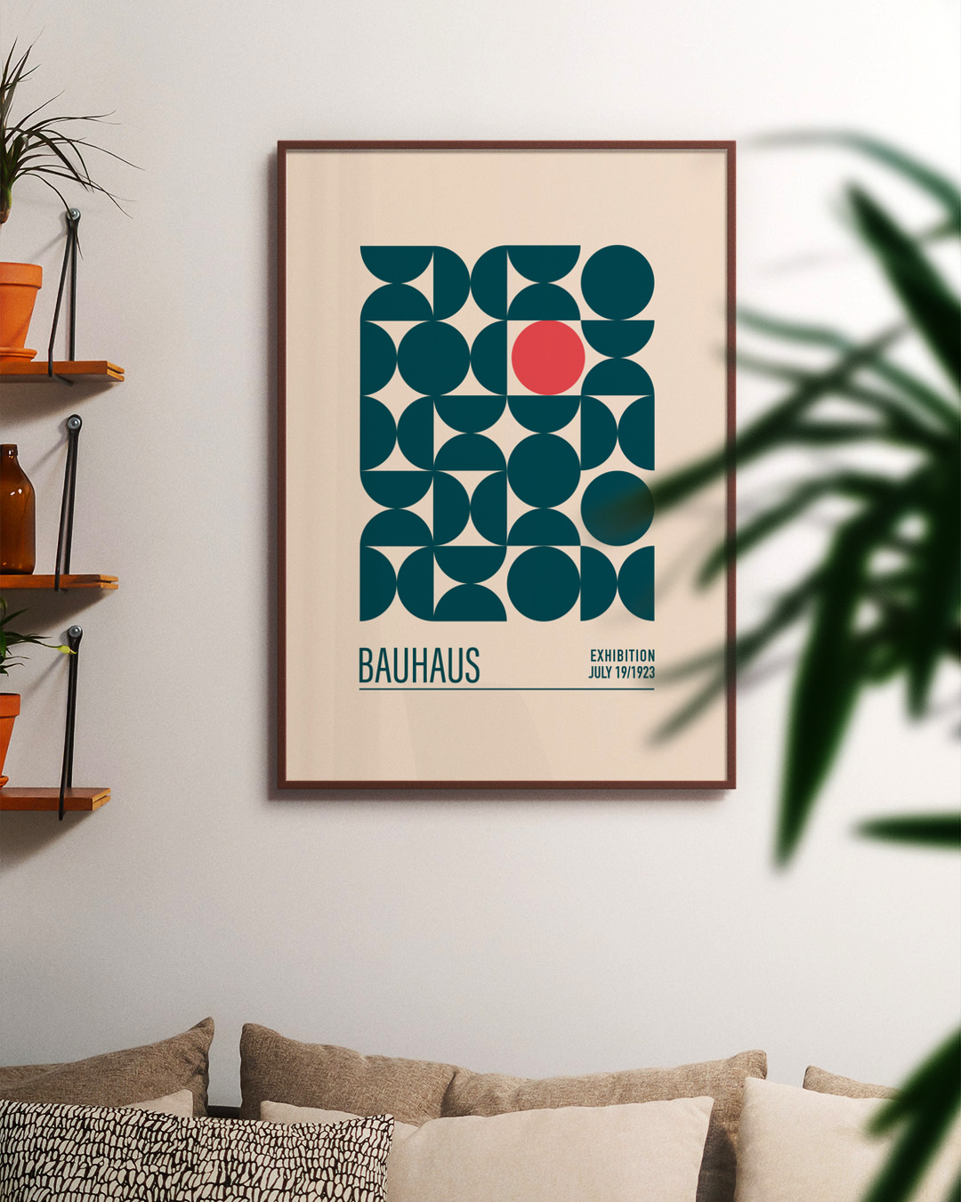 This Bauhaus inspired print exhibits a geometric design echoing the iconic modernist style. Created by Emel Tunaboylu, it features striking shapes and vivid colors, embodying the spirit of architectural minimalism.