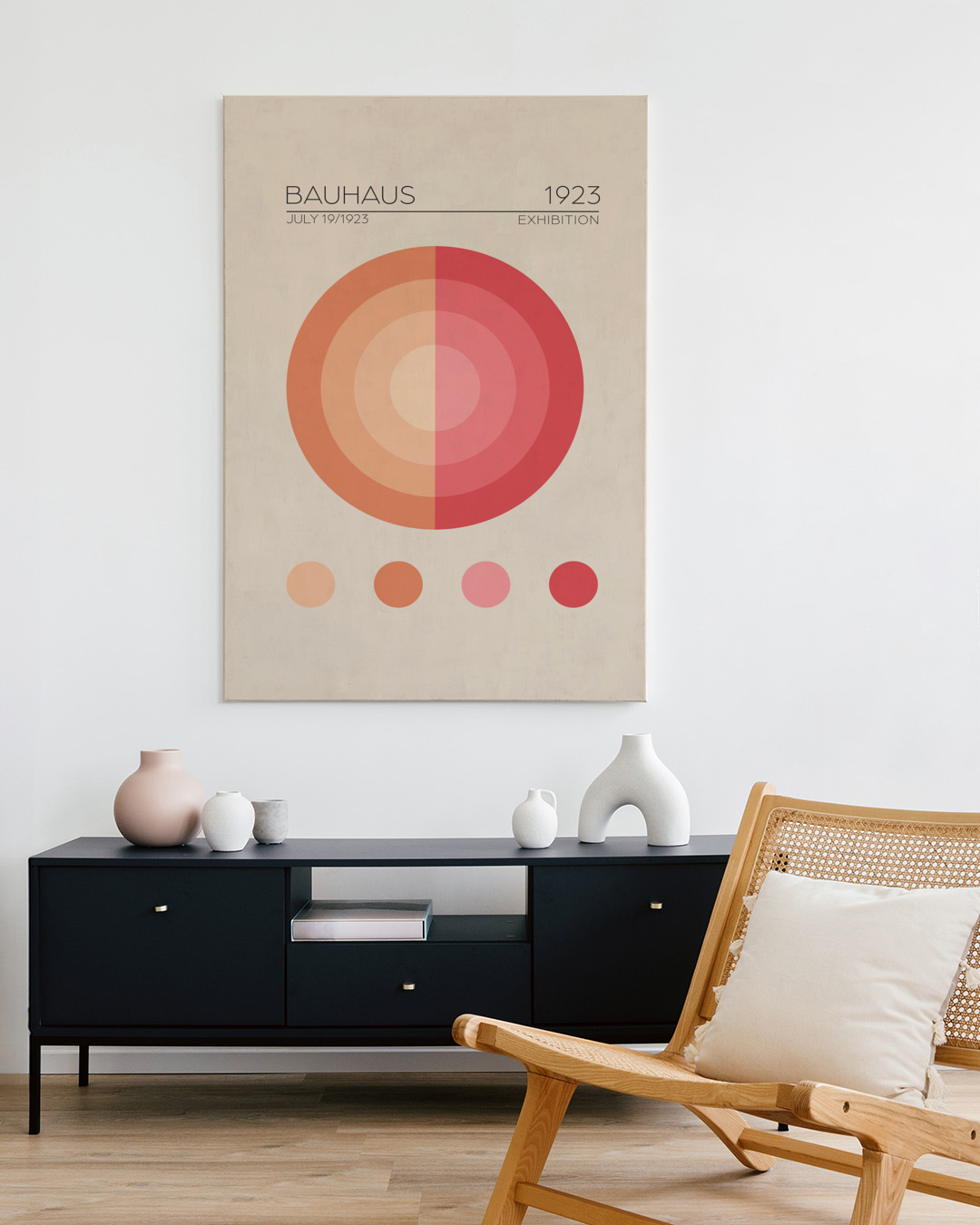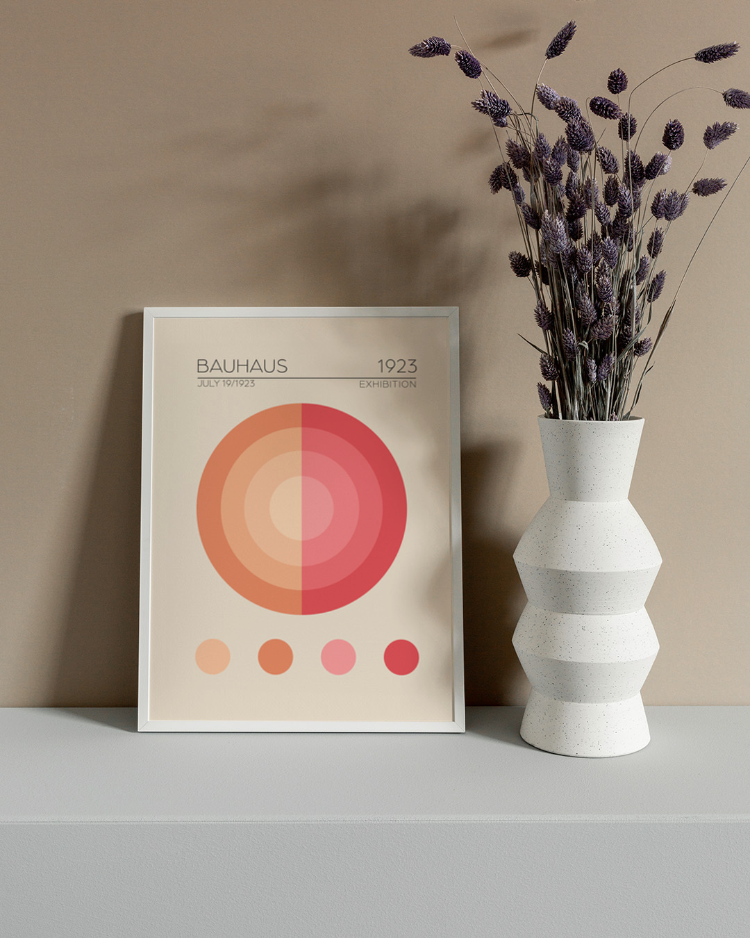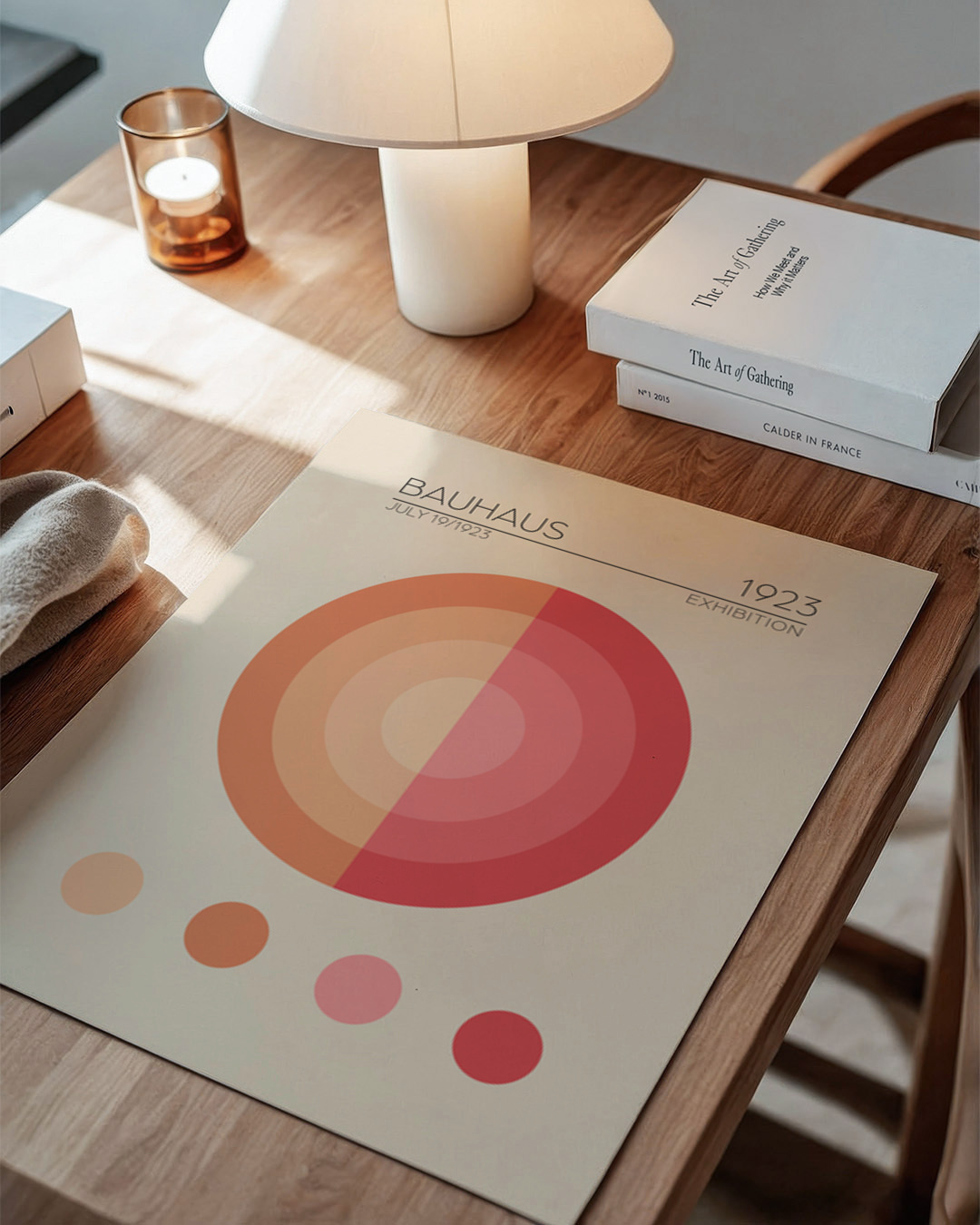 Emel Tunaboylu's Bauhaus-inspired design features striking pink and orange geometric circles with subtle retro vibes. The overlapping hues and circular patterns bring a touch of modernism and architectural creativity.