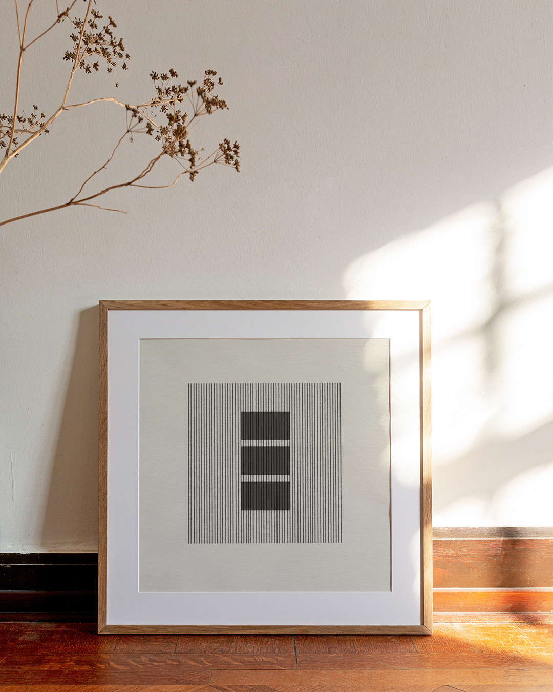 Miuus Studio presents a captivating study in minimalism with precise black lines and geometric forms on a beige backdrop. This artwork embodies simplicity and elegance through its structured composition.