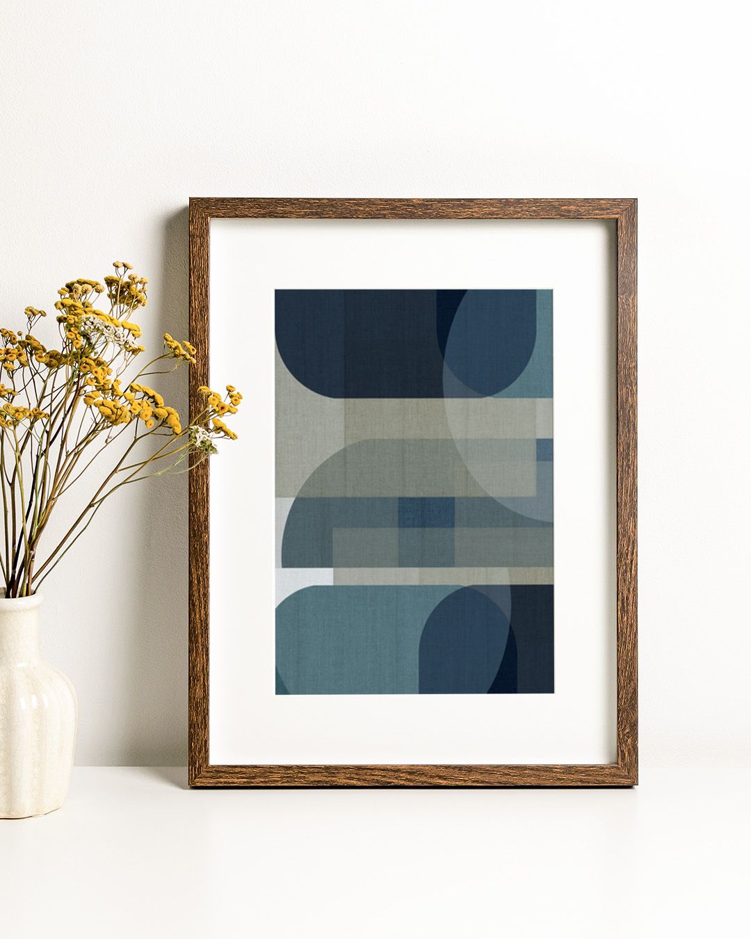 The stretched canvas is fitted with a sleek float frame in genuine wood for an elegant finish and extra dimension. The space between the canvas and the frame creates a floating effect.