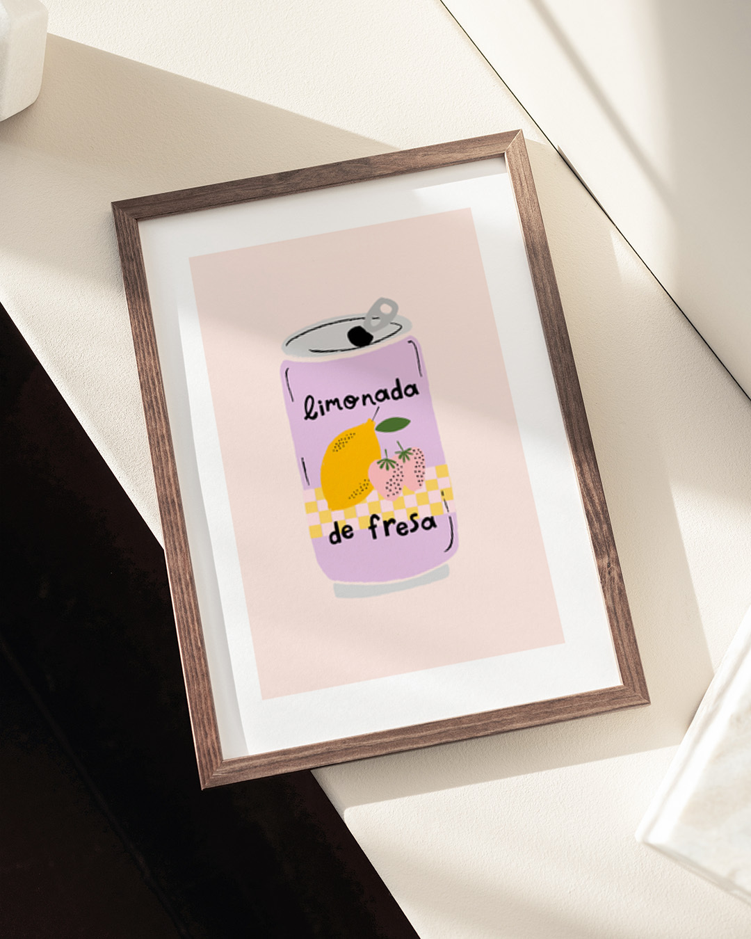 This illustration by Aislinn Simmonds features a pastel-coloured can of strawberry lemonade. A sweet choice for adding delicious charm to any kitchen or dining area.
