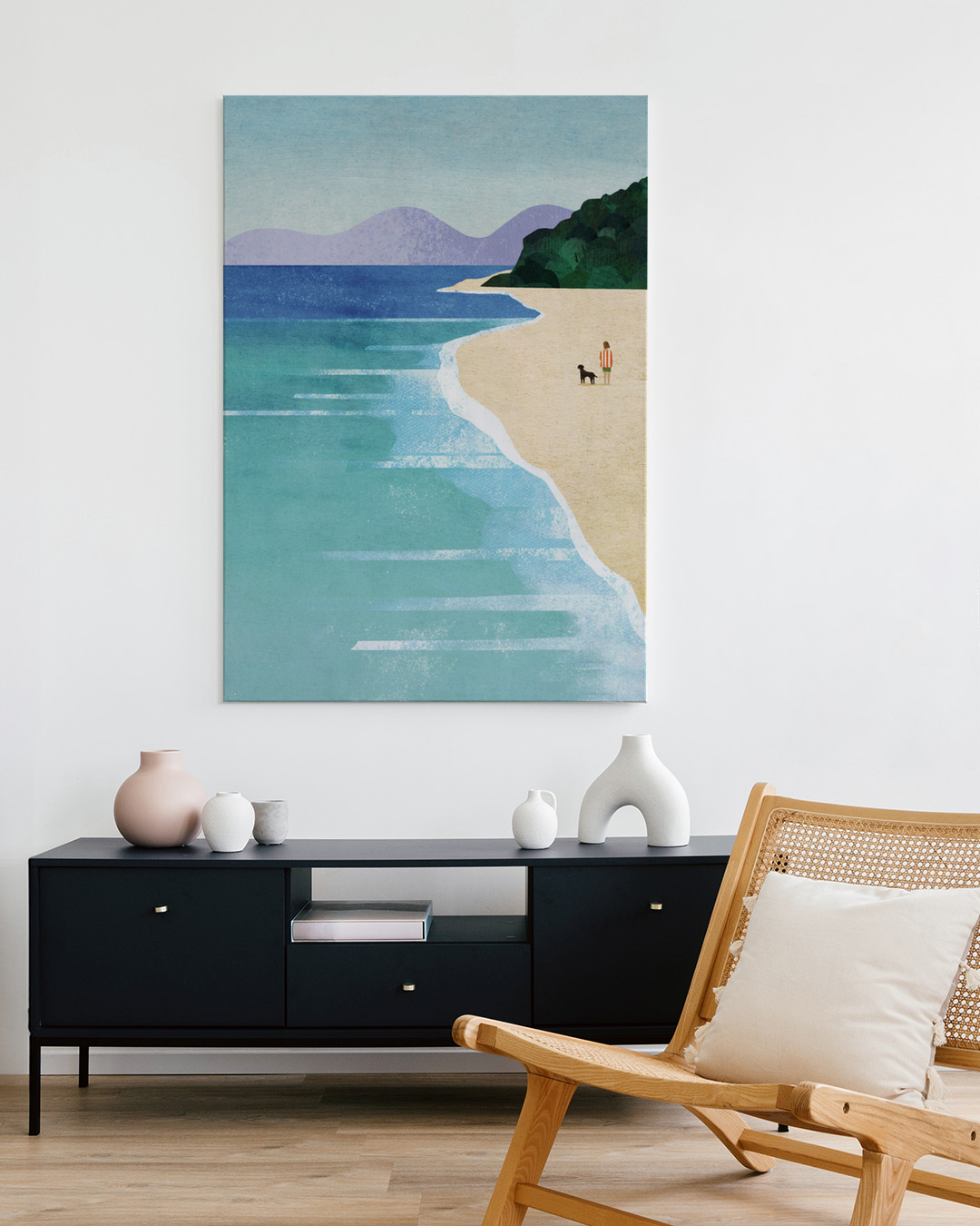 The stretched canvas is fitted with a sleek float frame in genuine wood for an elegant finish and extra dimension. The space between the canvas and the frame creates a floating effect.