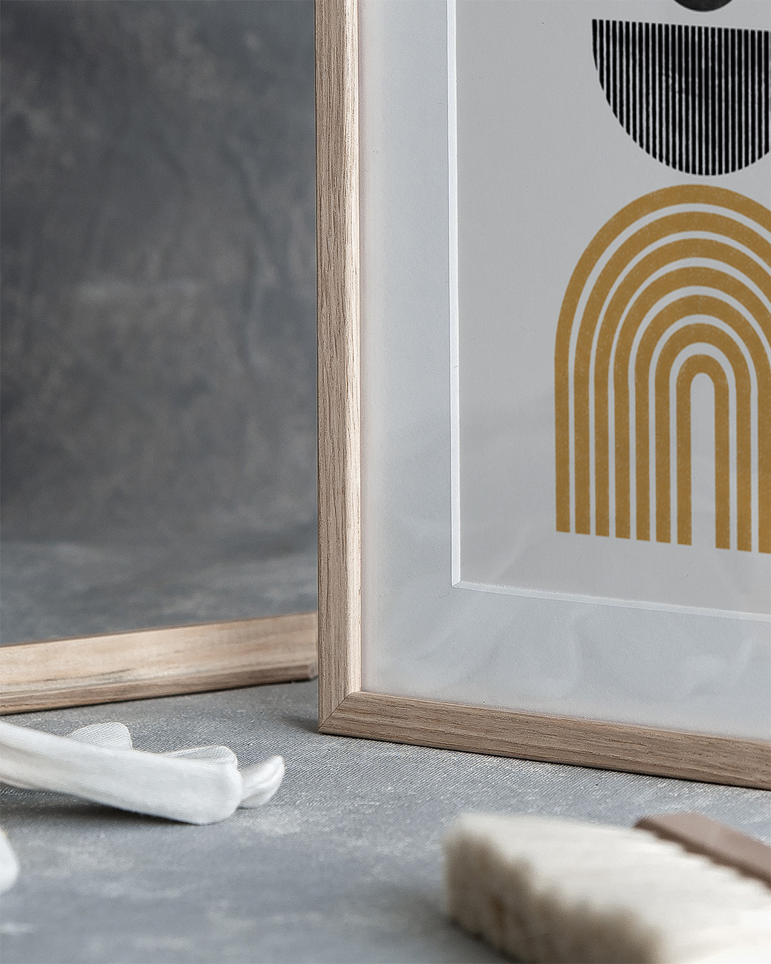 Choose framed delivery for your poster. Each handcrafted frame ensures precision and quality, with a variety of colours and styles available.