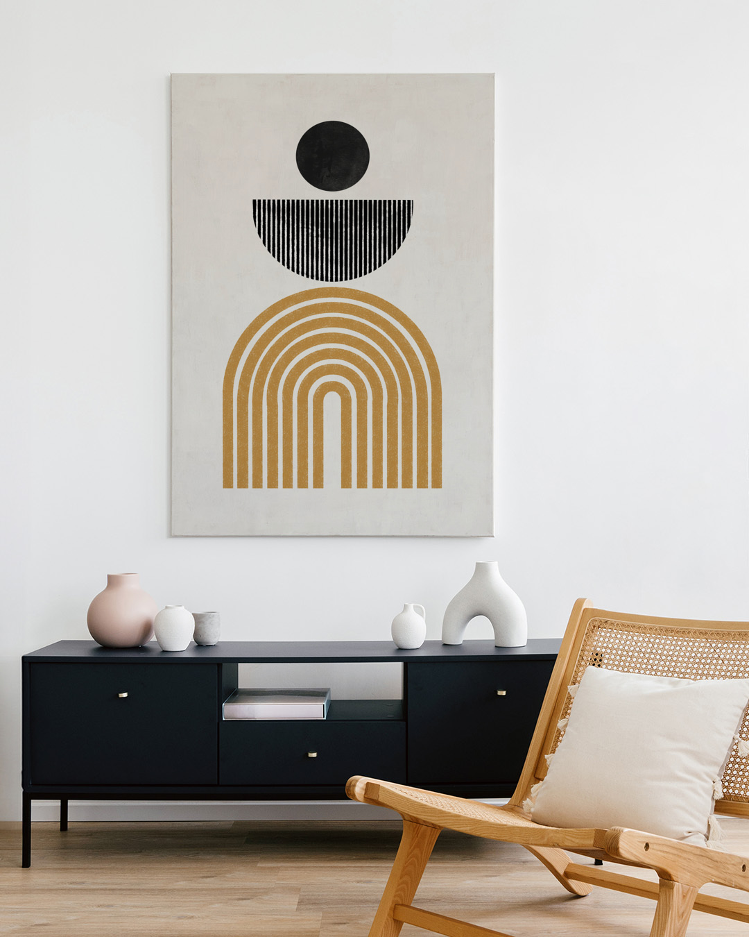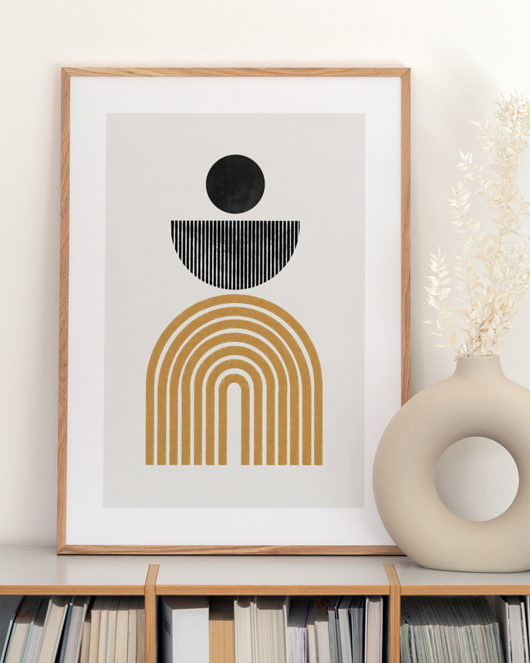 Embrace the minimalist style with this midcentury-inspired geometric composition by Miuus Studio. Featuring clean lines and earth tones, this piece epitomizes modern design aesthetics with a focus on simplicity and form.