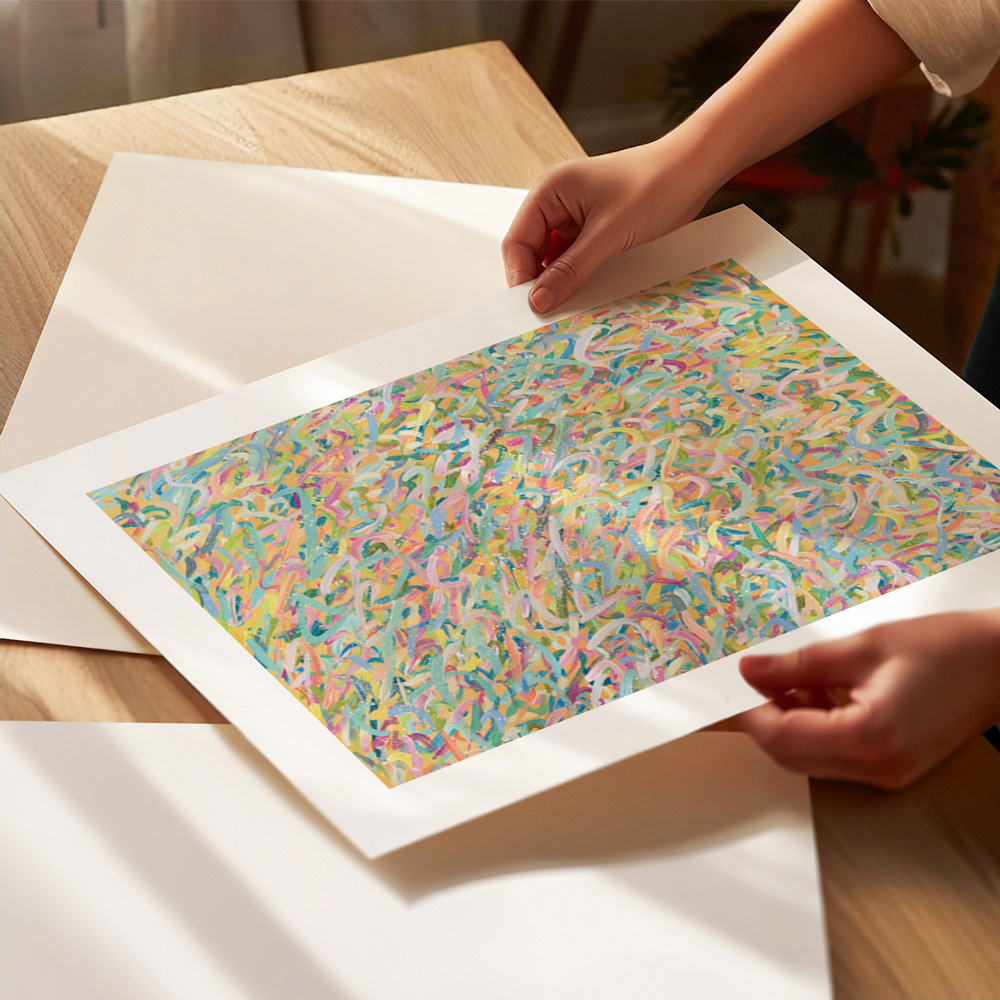 A vibrant abstract artwork filled with dynamic swirling patterns and a mix of colourful hues.
