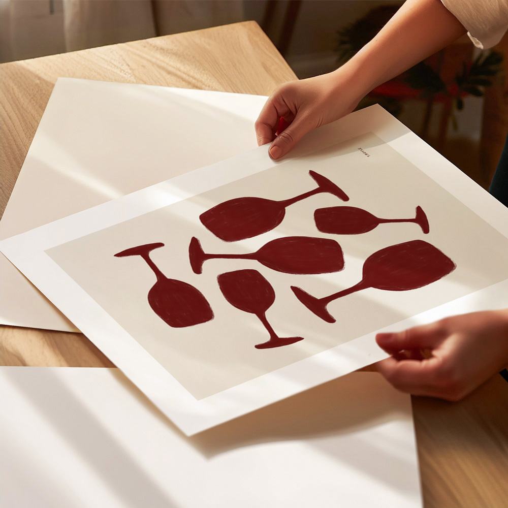 A graphic depiction of various red wine glasses against a light background, capturing the essence of wine culture in a playful yet elegant manner.