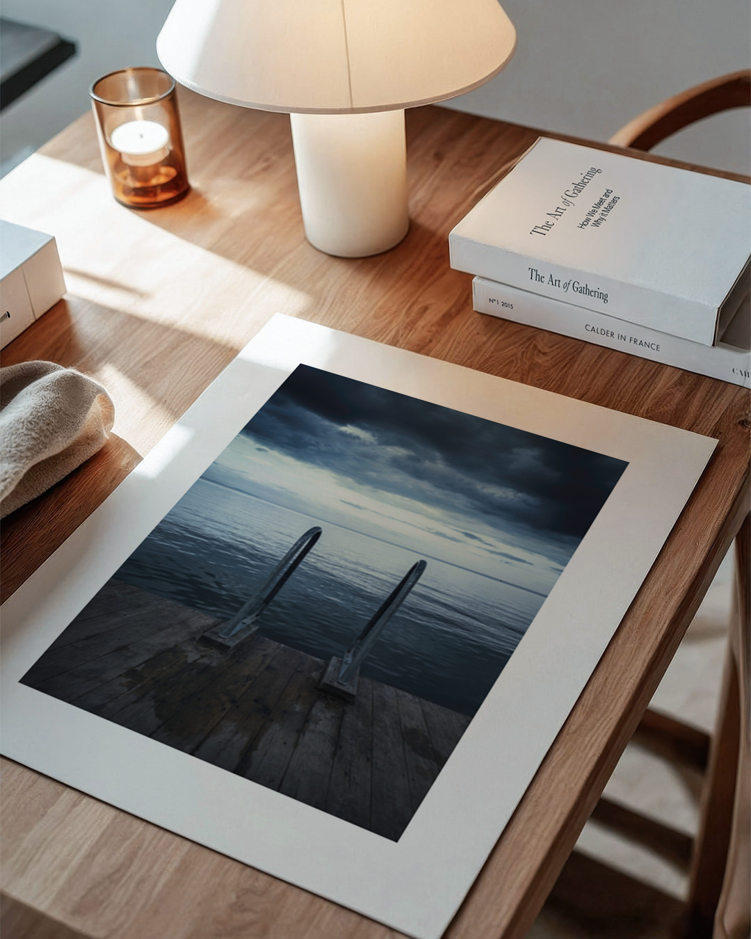 Dramatic coastal scene featuring a moody sky over a lonely jetty. Perfect for creating a contemplative atmosphere.