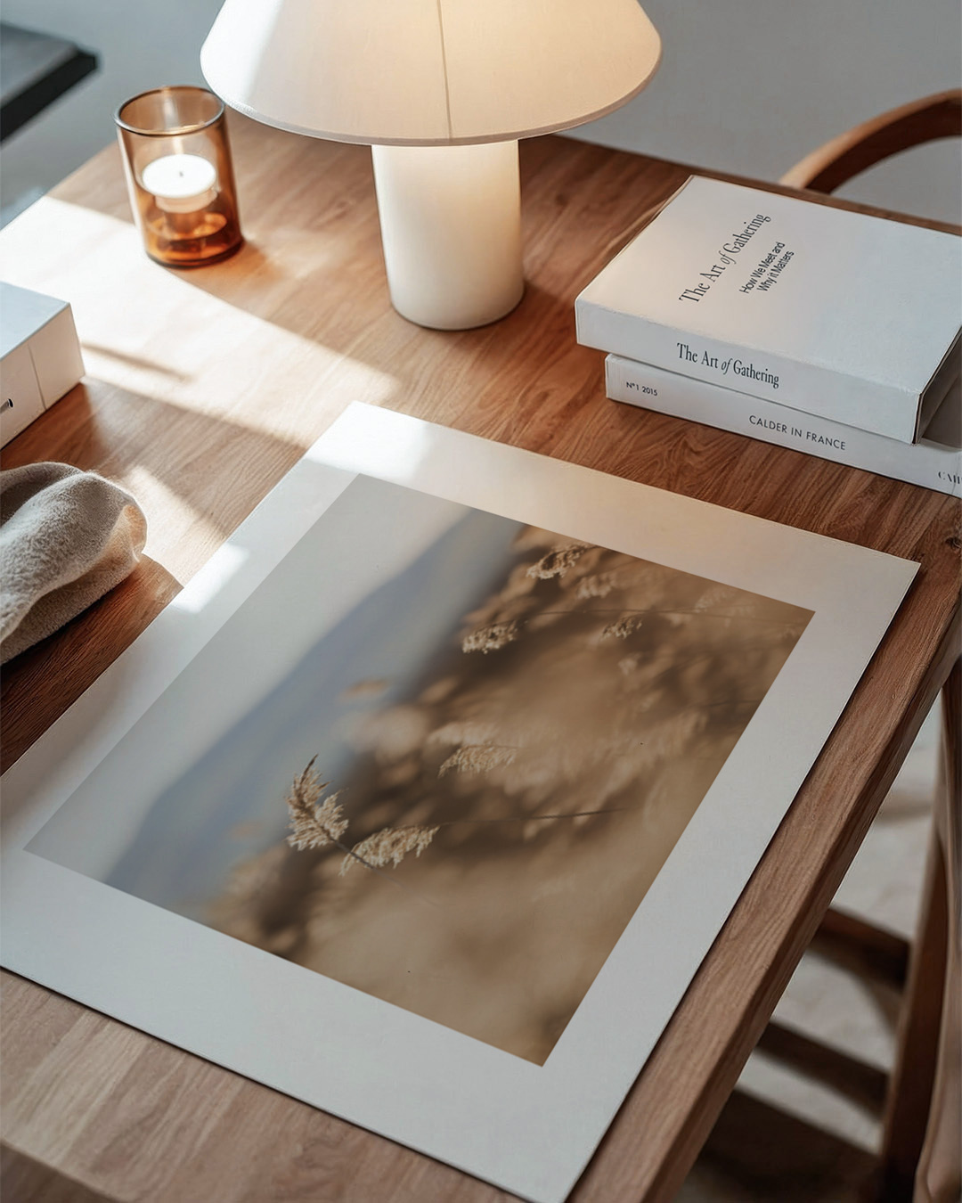 Crystal Lynn Collins captures the subtle beauty of marsh grass swaying in the breeze, set against distant hills. This tranquil photograph embodies the essence of nature's gentle movements and serene landscapes with a palette of warm earth tones.