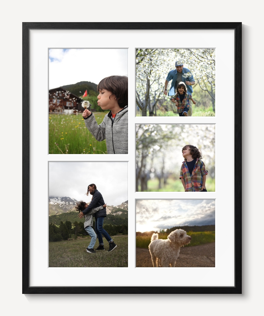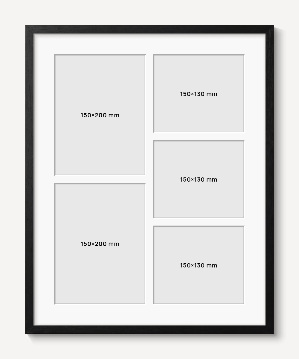 Beställ collagetavla Melody inklusive framkallning och inramning med passepartout. Collagetavlan levereras färdig att hängas och rymmer 5 foton. Storlekar & priser