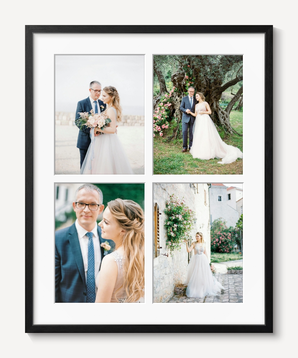 Beställ collagetavla Quad inklusive framkallning och inramning med passepartout. Collagetavlan levereras färdig att hängas och rymmer 4 foton. Storlekar & priser