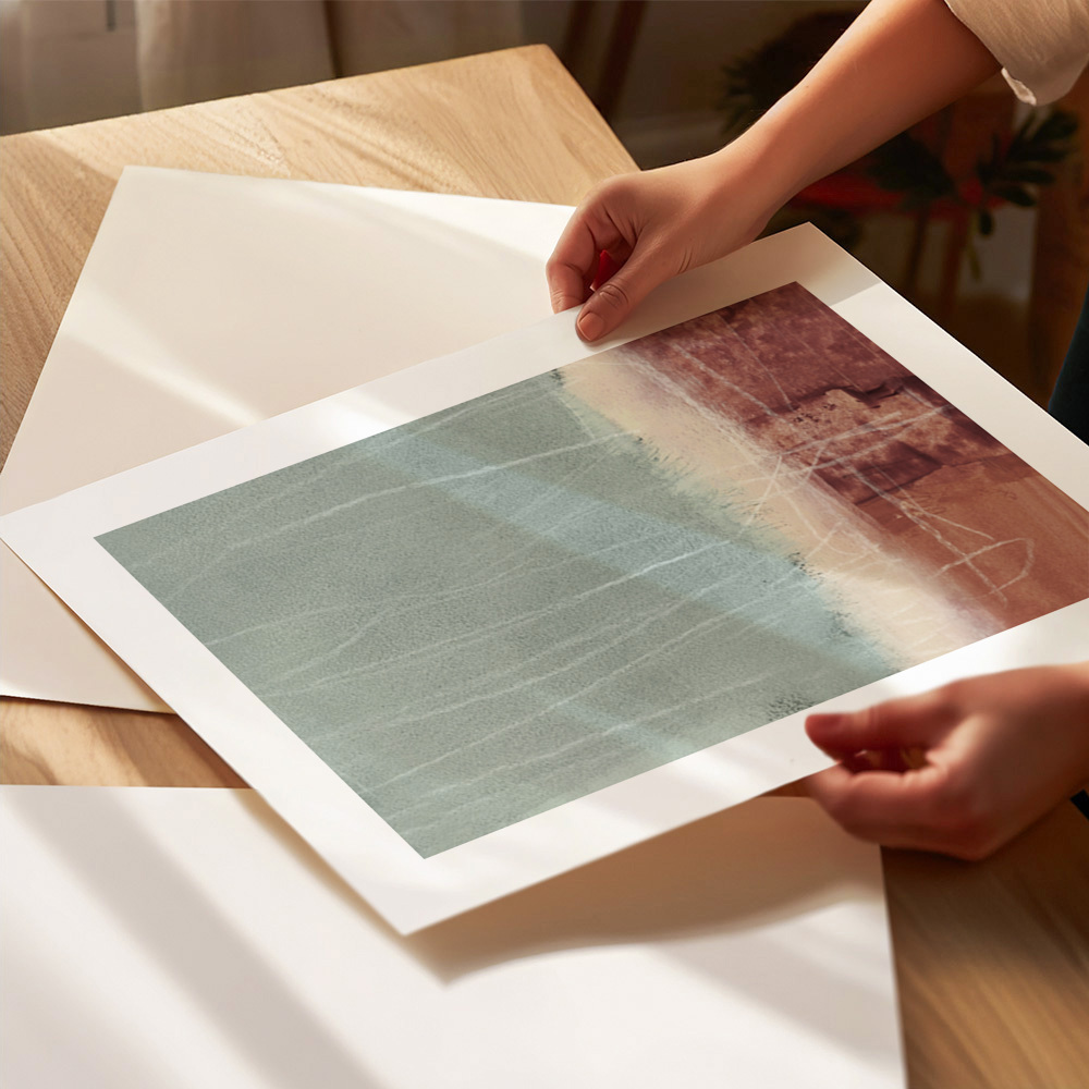 Fånga naturens essens med detta abstrakta verk av Iris Lehnhardt, med harmoniska virvlar av turkos och bruna toner. Perfekt för att skapa lugn och textur i vilket rum som helst.