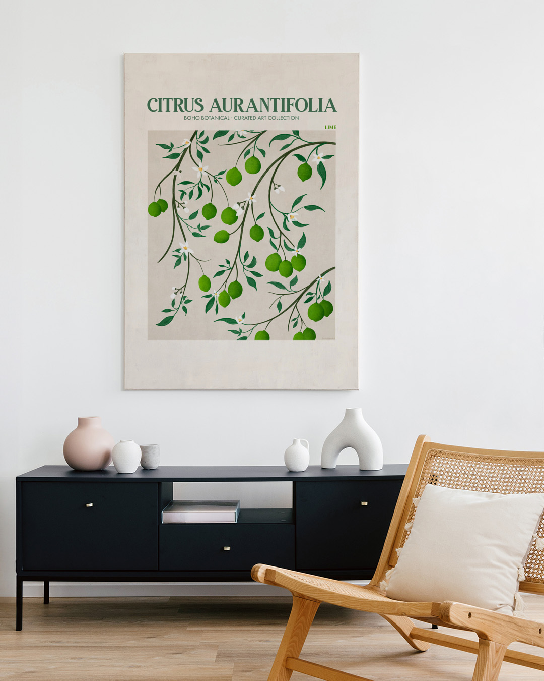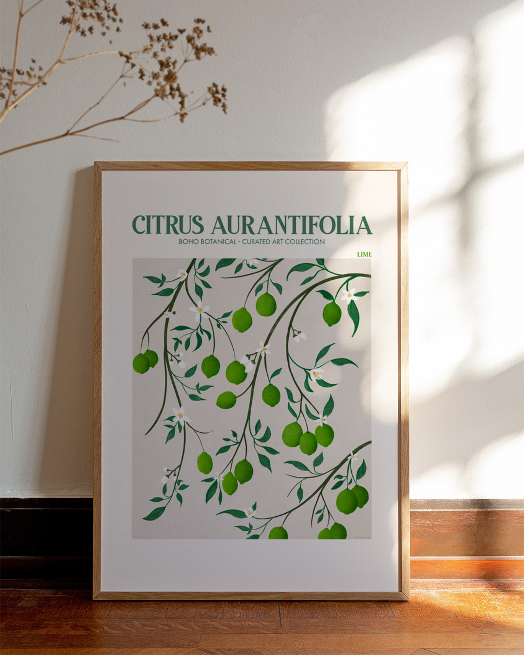Gläd dig åt den frodiga avbildningen av limegrenar med sitt levande gröna lövverk. Perfekt för att ge en naturlig touch till vilket rum som helst, denna bit av Emel Tunaboylu förkroppsligar en delikat och uppfriskande botanisk charm.